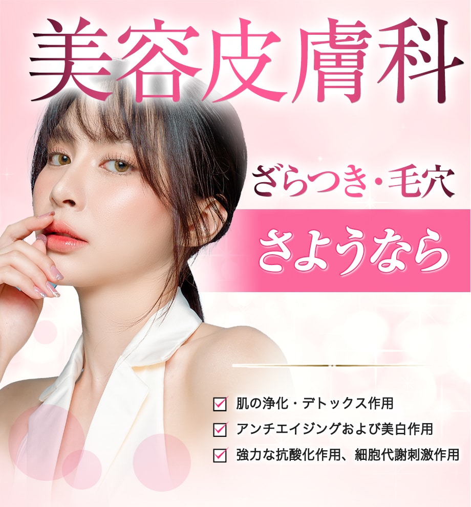 植物性活性炭と乳酸をメインとしたピーリング剤で表皮浅層から中層(施術方法により真皮網状層~真皮乳頭層)にかけて浸透し、肌のアンチエイジングに必要な薬効成分が配合されています。