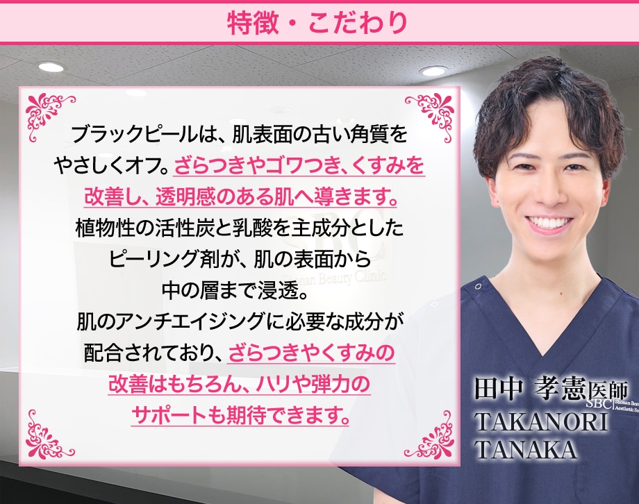 ブラックピールは、肌表面の古い角質を優しくオフしながら、肌本来の透明感を引き出すスペシャルケア。