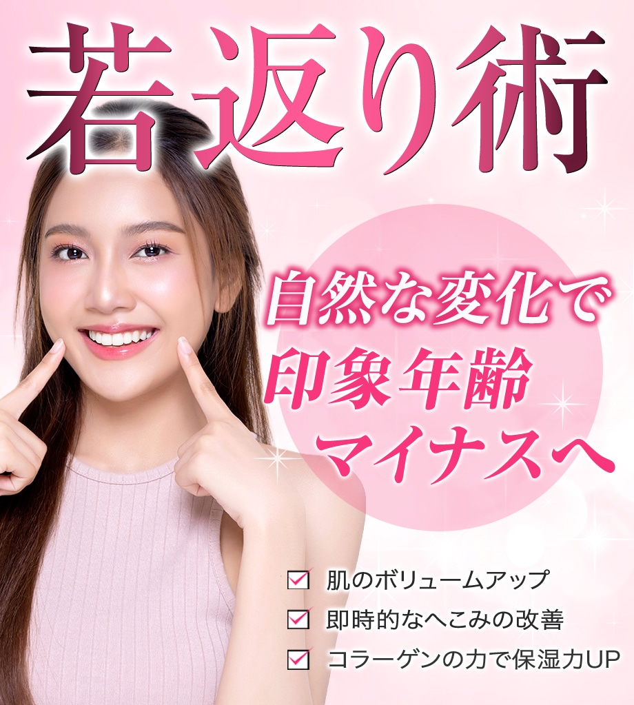 肌にコラーゲンを注入することで「肌細胞の再生・活性化」「肌のボリュームアップ」「ハリ改善」「小じわの改善」を目的とした治療です。