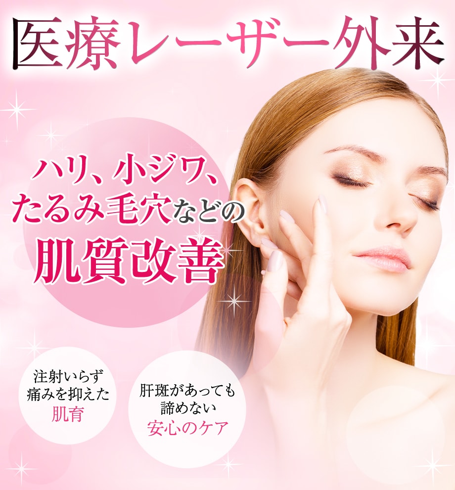 さらに、炎症を抑えつつ肌のバリア機能の回復をサポートできるため、メラニンへの過度な反応を抑えつつ低刺激で、赤みや炎症を起こしにくい点も特徴です。顔だけでなく、首・手の甲・デコルテなどの小ジワ、たるみ、くすみが気になる方で、痛みやダウンタイムのない治療をご希望の方にもおすすめの治療です。
