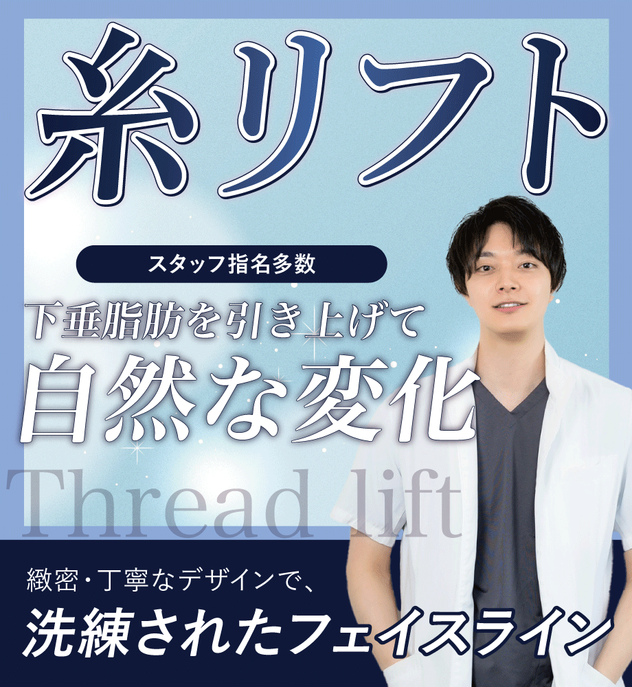 糸のリフトアップ術はお顔の表面に傷がつかず、かつ腫れ・内出血も比較的少ない施術のためお休みが取りにくい方も手軽に受けて頂きやすい小顔・若返り施術です。