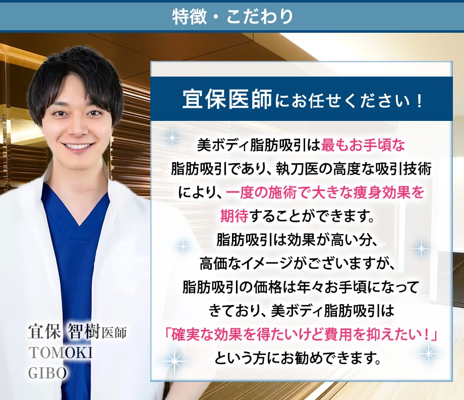 【丁寧・正確・やさしい】仕上がりのバランスに自信があります!人気の医師だからこそ!お悩みに合わせたオーダーメイドな脂肪吸引です。