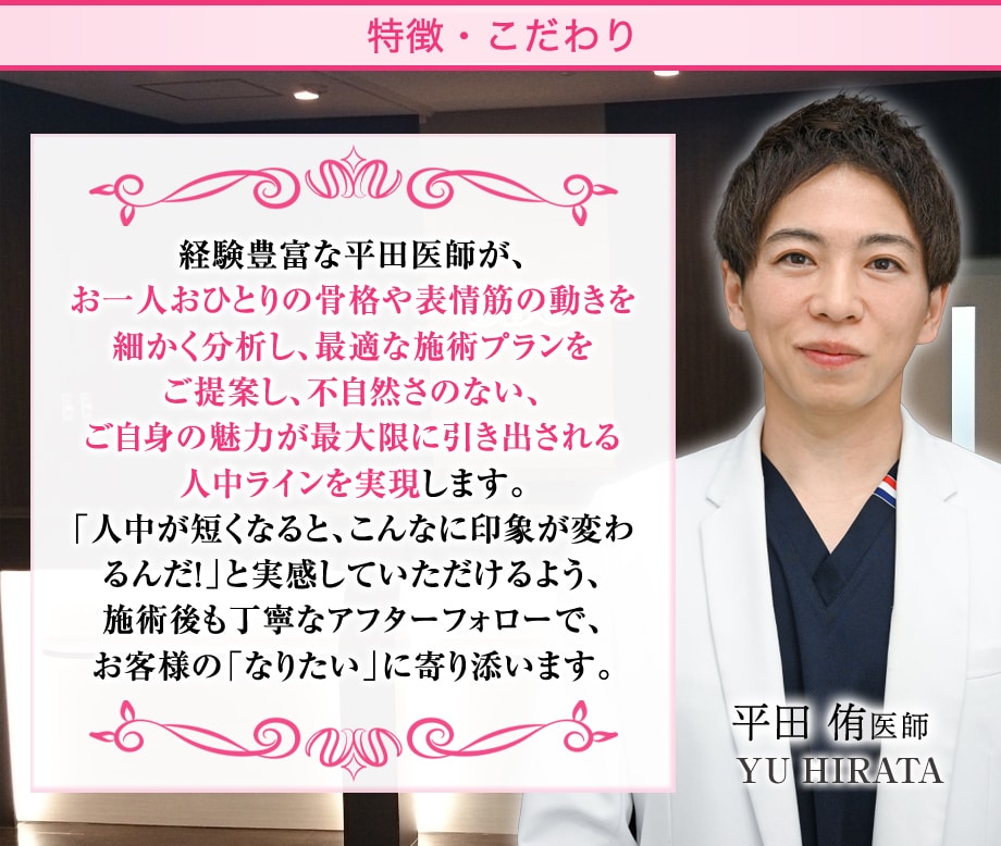 メスを入れることなく人中を短い印象にする事が出来ます。