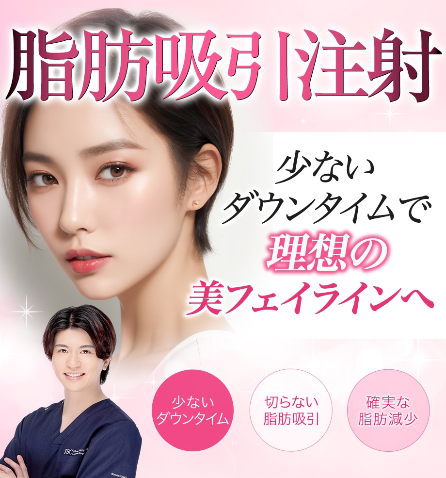 また脂肪吸引と比べダウンタイムが少なく、狙った部分の脂肪を減らすことができる安全で確実・簡単なお顔やせ術となっています。