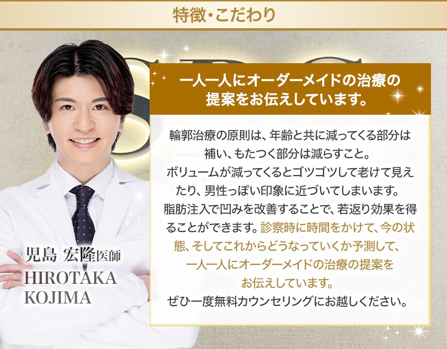 自然で若々しい仕上がりにこだわり、部位やご希望に合わせた最適なご提案をいたします。