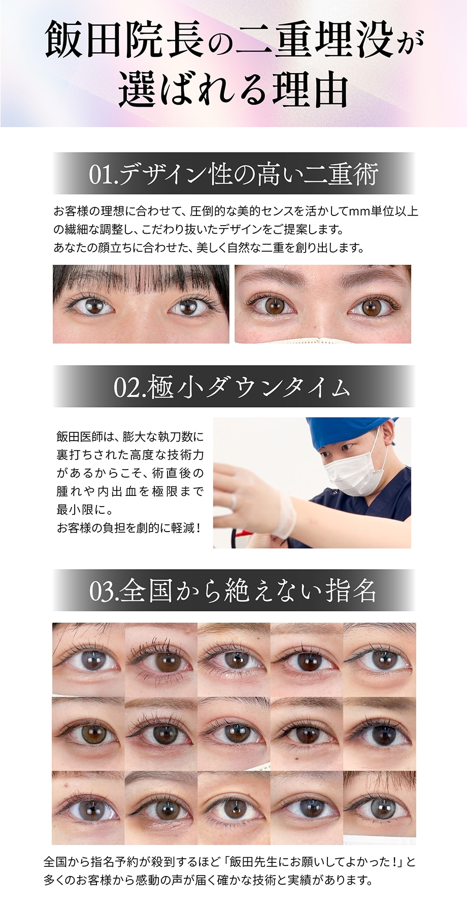 ミリ単位以上の繊細な調整が、美しい仕上がりを作る。あなたの魅力を最大限に引き出し美しく自然な二重をご提案します!