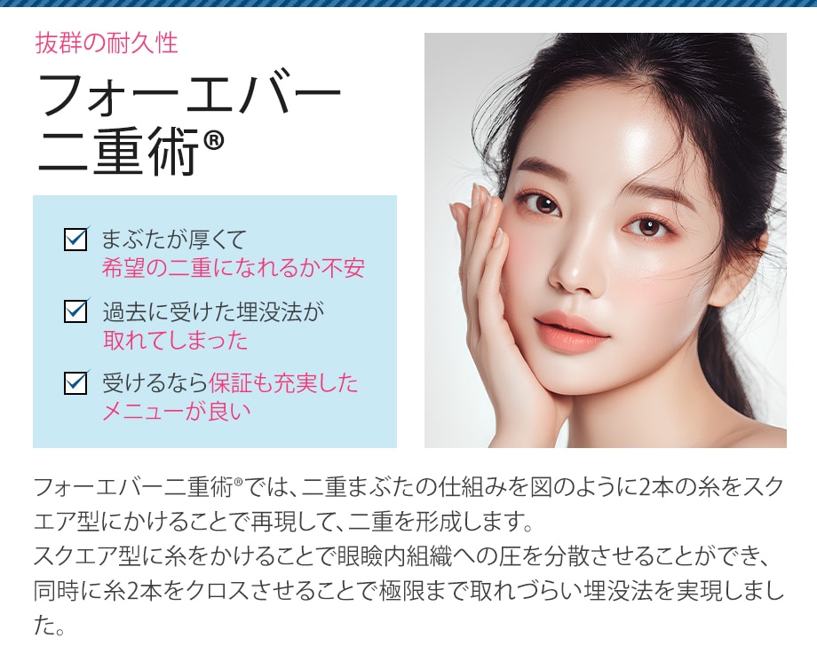 | フォーエバー二重術(R)(両目(笑気麻酔込)) | 98,000円 |