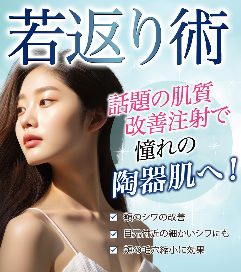 しわ・毛穴知らずの陶器肌へ導く肌質改善注射!