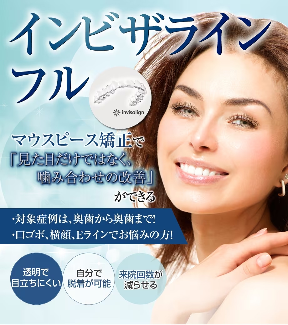 インビザラインフルなら、ワイヤー矯正と異なり長期間の矯正でも目立ちにくく痛みも少なく快適!