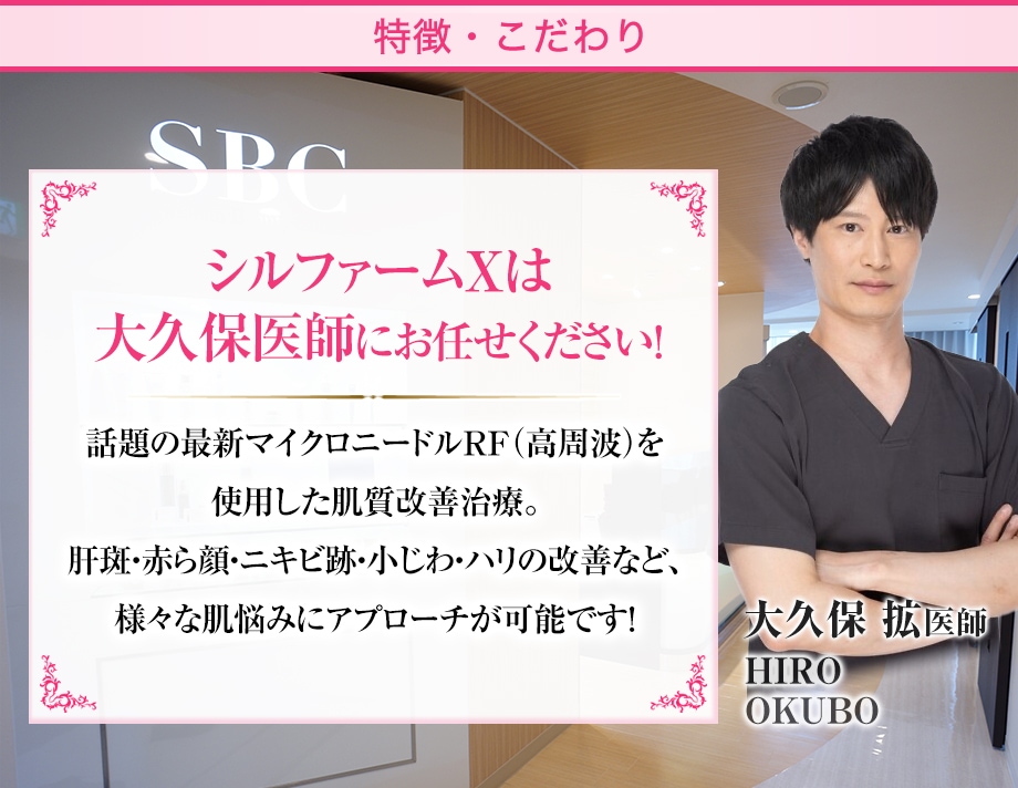シルファームXはRFレーザーを皮膚内に照射する治療で、肝斑、毛穴の開き、にきび跡の凹凸、赤ら顔、ちりめんじわ、肌の全体的なくすみの改善などに効果を発揮します。