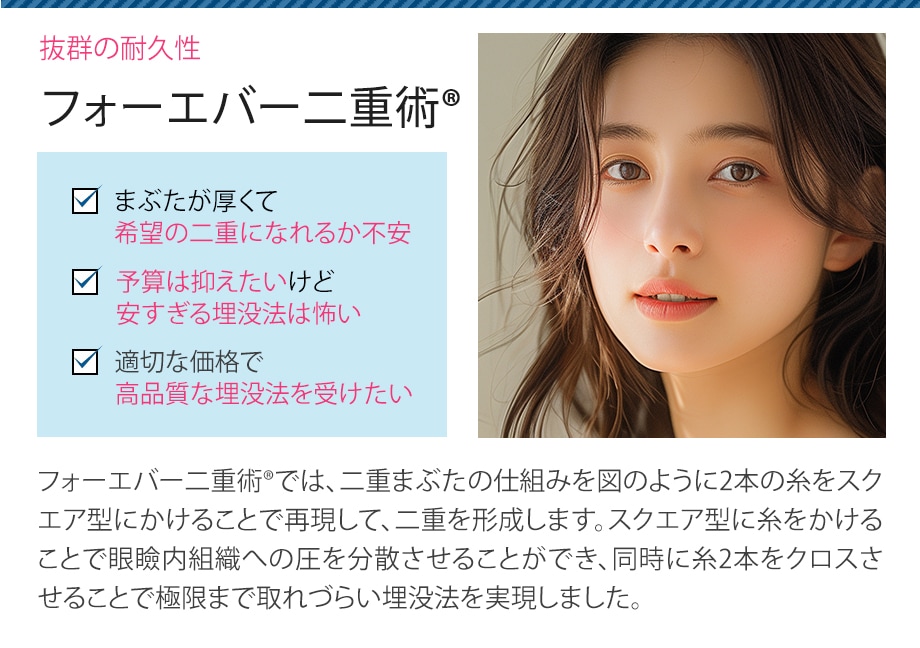 | フォーエバー二重術(R)(両目(笑気麻酔込)) | 98,000円 |