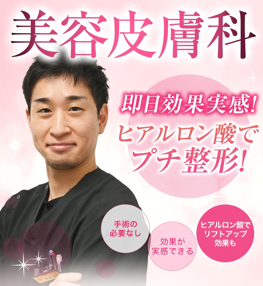 ヒアルロン酸はお客様のお悩みや希望に合わせて薬剤の種類や注入量、施術部位を変更でき様々なお悩みに対応可能です。即効性があり施術直後から変化を感じることができ、半年から一年経つと徐々に吸収されていきます。注入後多少の腫れ感を感じる事もありますが、切開などはしないためダウンタイムも少なく当日からメイク可能な施術です。