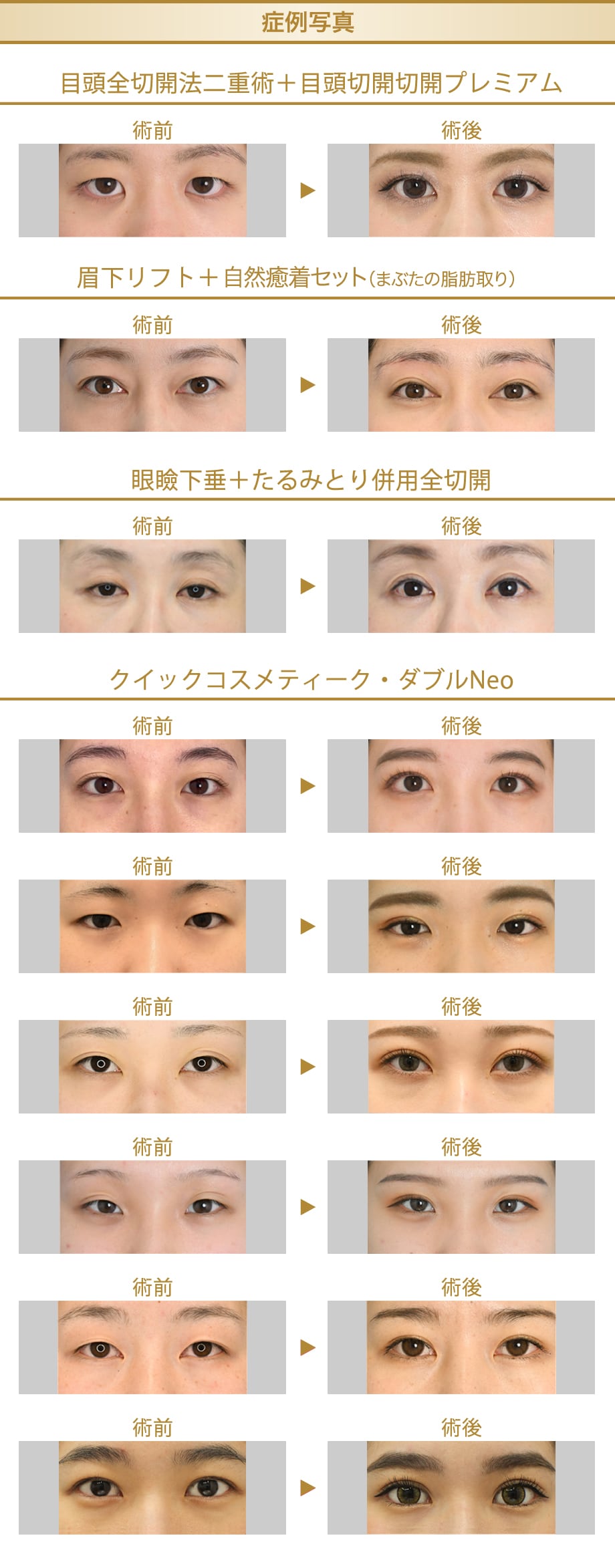 下瞼を支える力が弱い人には、眼輪筋の引き上げ固定や、緩んだ下瞼の短縮手術などが必要です(追加には別途料金がかかります)。