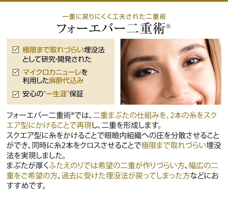 | フォーエバー二重術(R)(両目(笑気麻酔込)) | 98,000円 |