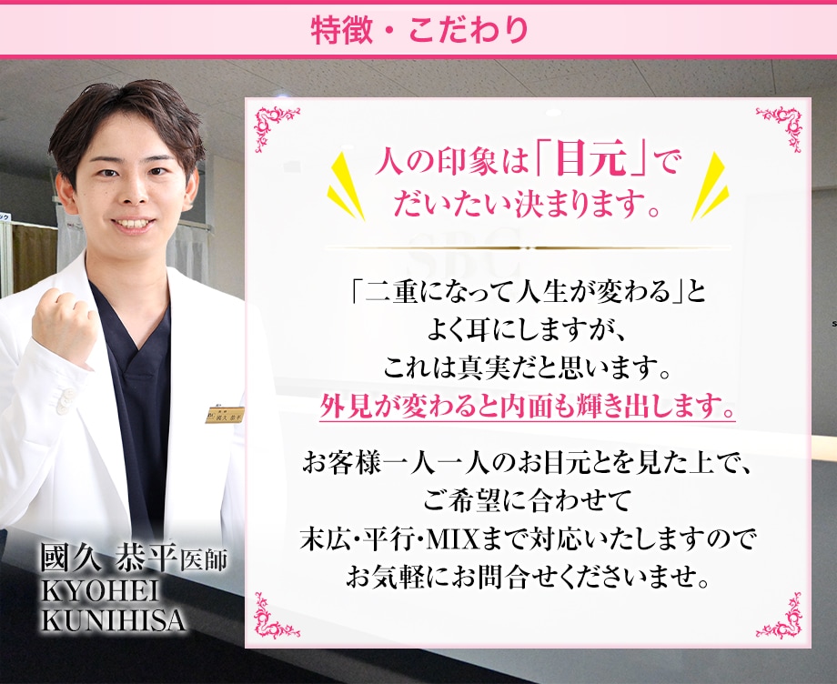 蒙古ひだが張っている方、離れ目が気になる方、強固な二重ラインがほしい方などにおすすめです。