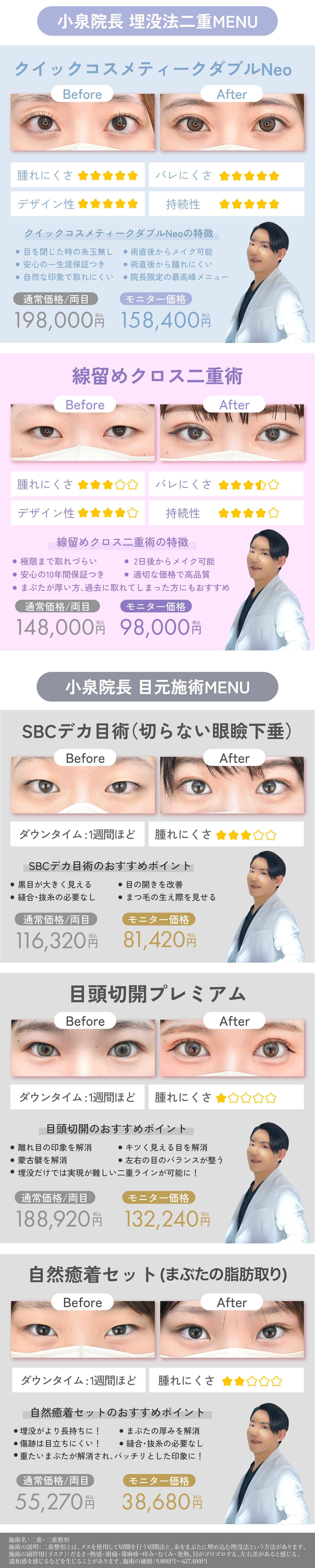 | 自然癒着セット(まぶたの脂肪取り) | 38,680円 |