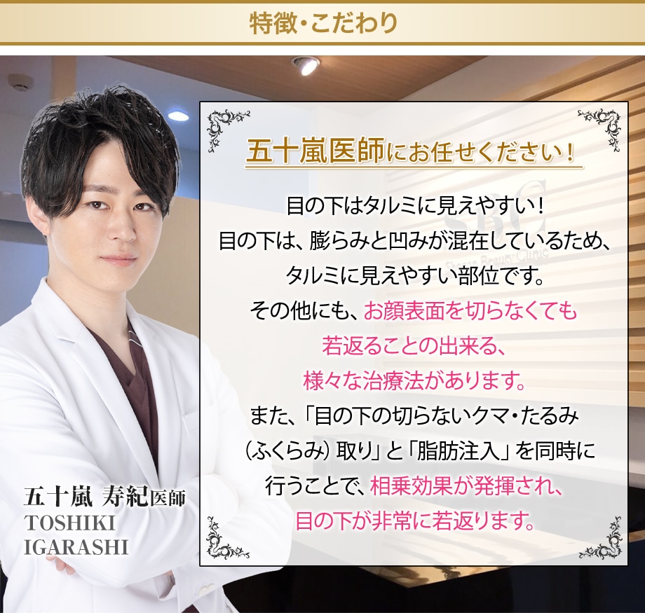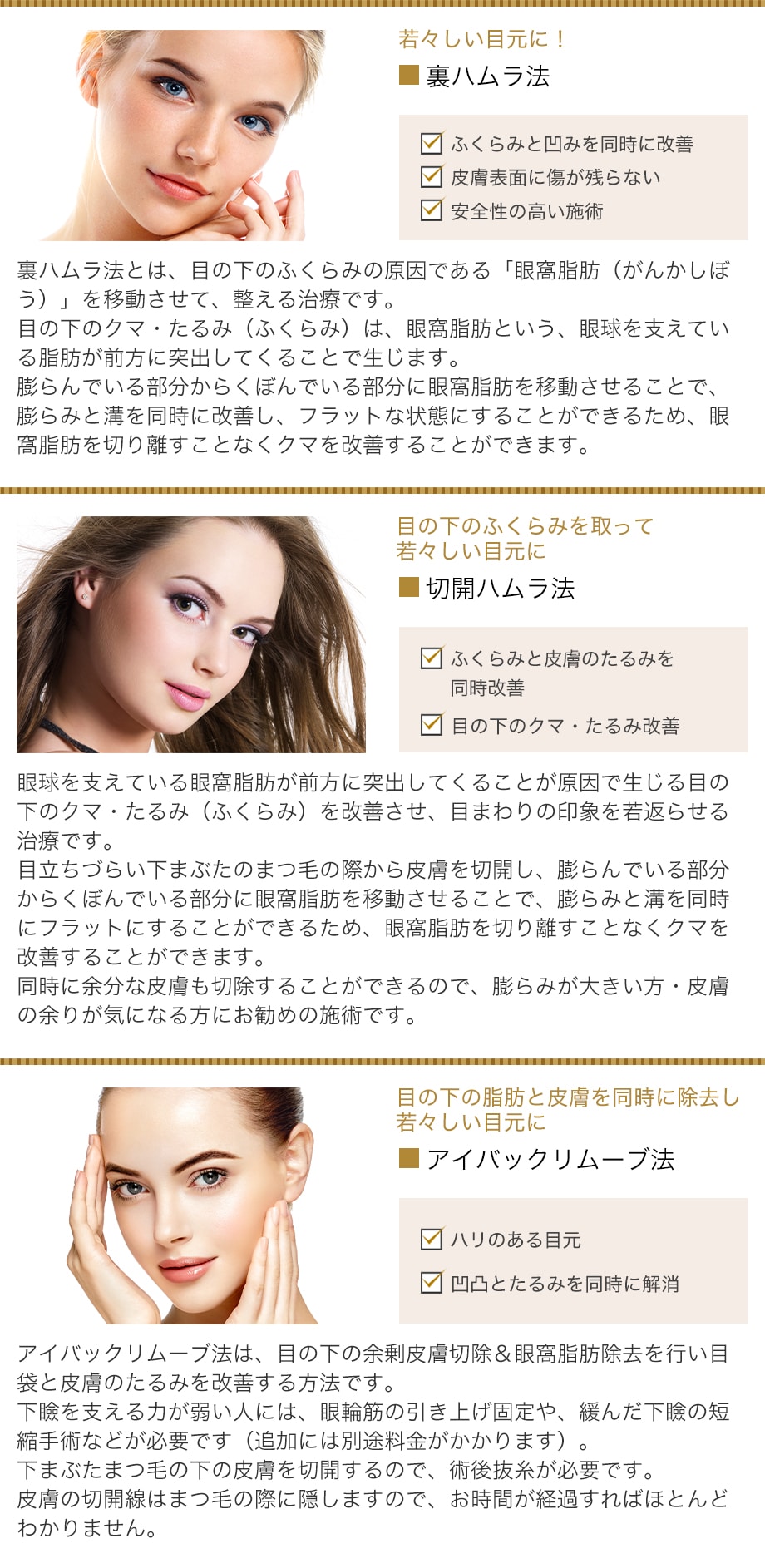 | 目の下の切らないクマ・たるみ(ふくらみ)取り(麻酔(局所麻酔)代が含まれています。※別途安心麻酔(静脈麻酔)代がかかります。 ) | 79,100円 |