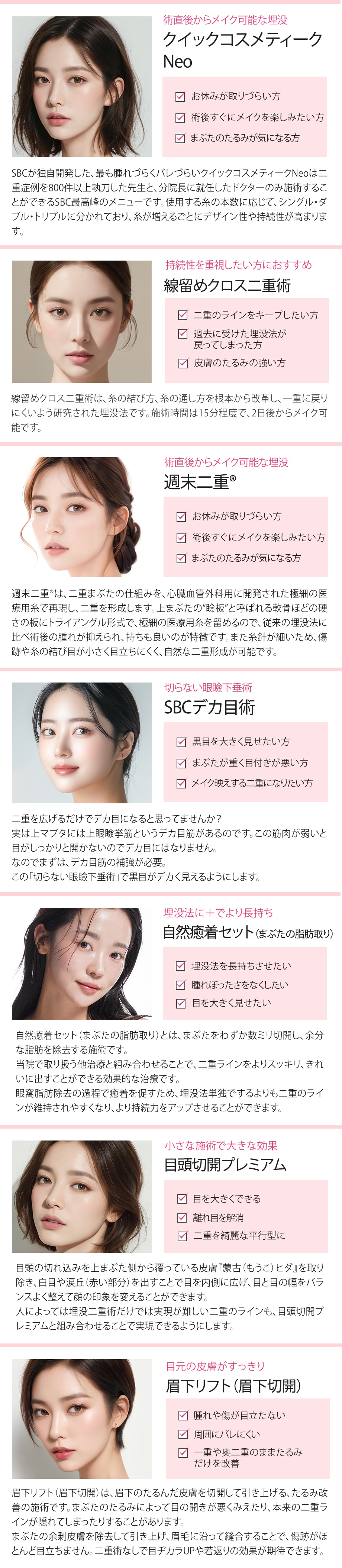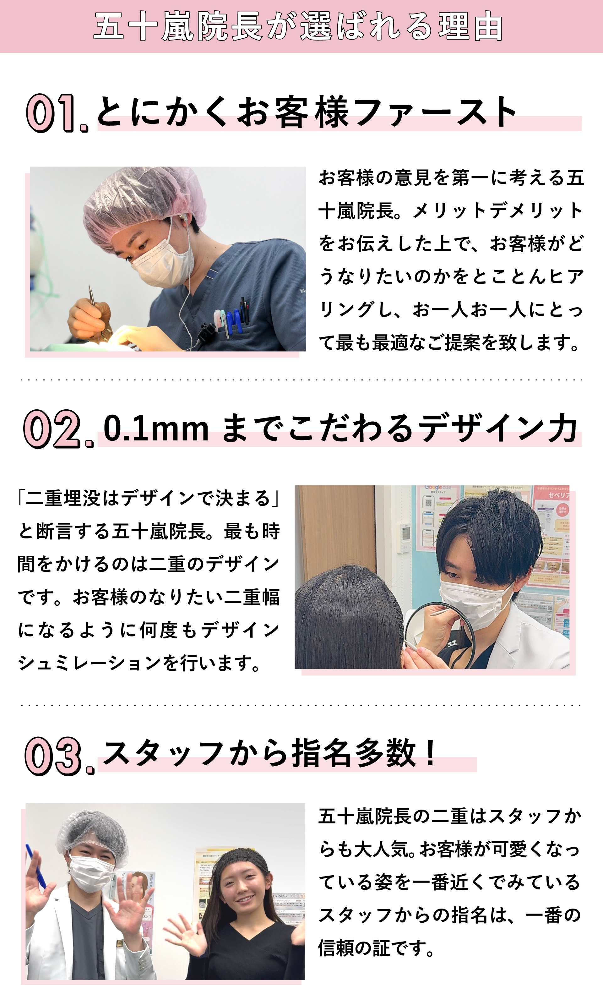技術もさることながら、二重幅も0.1mmまでこだわり、綺麗目な目からかわいらしい目まで幅広くデザインが可能です。