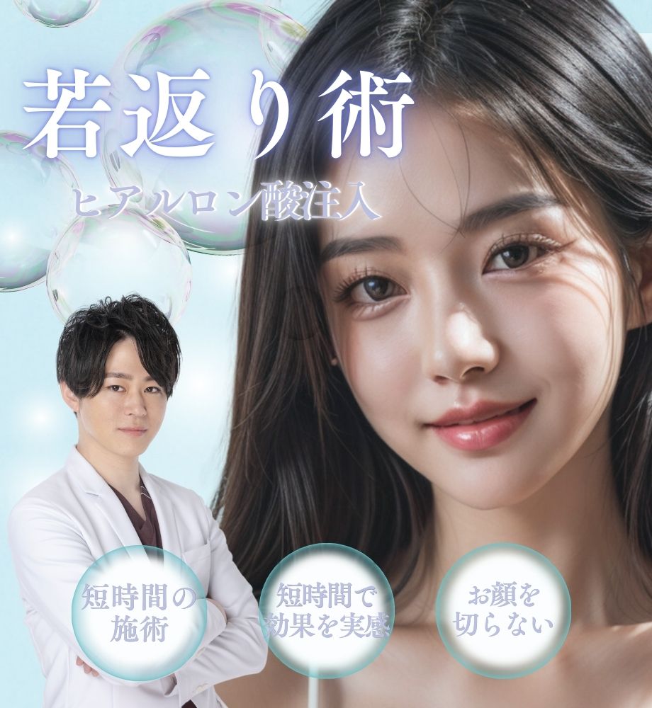 施術では透明なジェル状の製剤を使用します。この製剤が注入されると、元より体内にある自身のヒアルロン酸と融合することで皮膚にふくらみが生まれます。このふくらみがシワの充填剤となり、シワの凹みを持ち上げることで、くぼんだ肌がなだらかになりシワが改善されます。