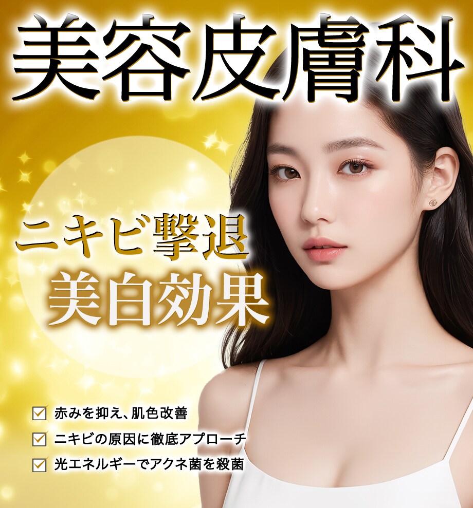 ニキビ治療だけでなく、赤みの残像するニキビ跡治療や赤ら顔治療にも使用でき、