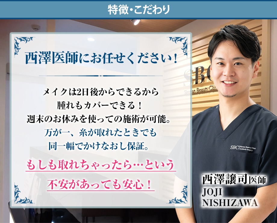 また糸針が細いため、傷跡や糸の結び目が小さく目立ちにくく、自然な二重形成が可能です