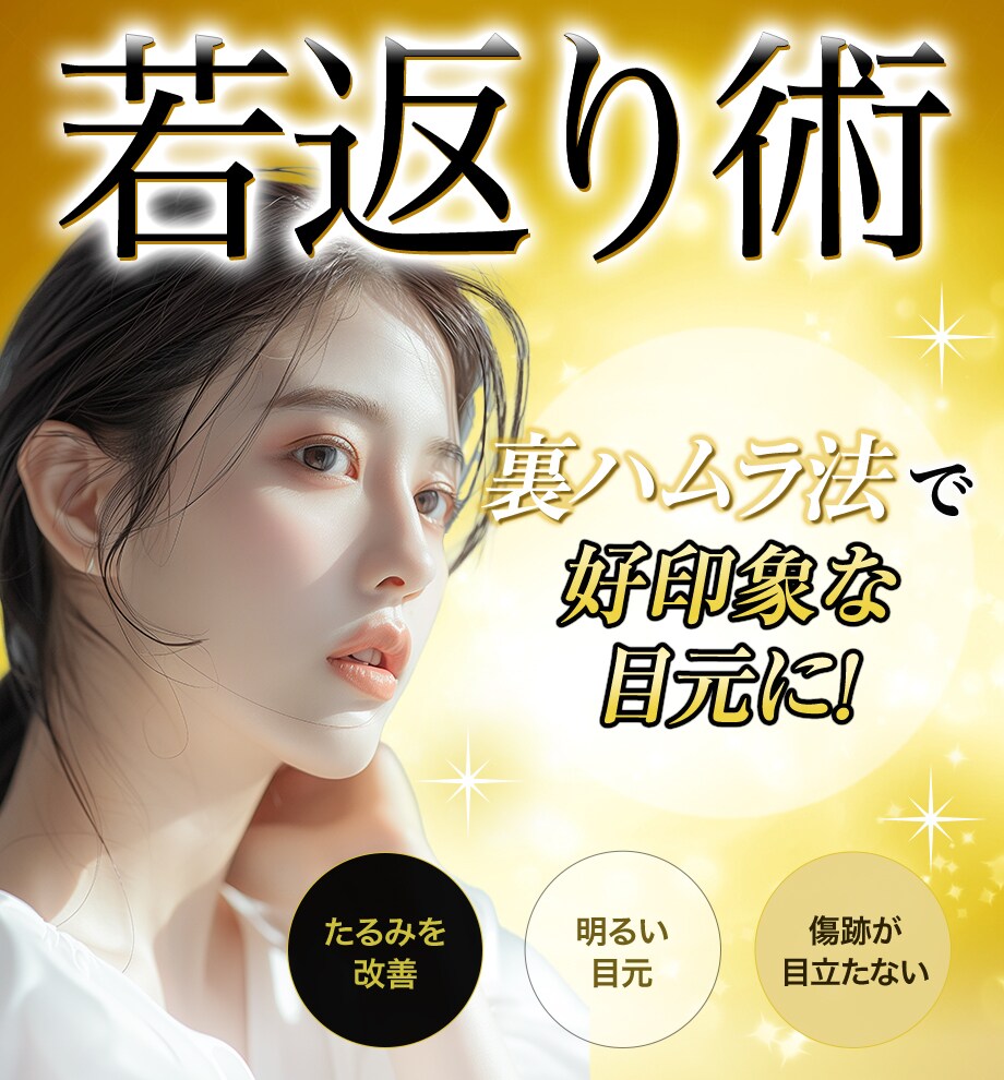 裏ハムラ法は、目の下の凹みを補填するために、眼窩脂肪を移動させます。