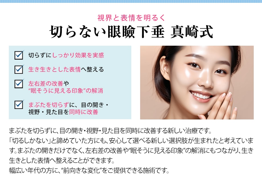 | 切らない眼瞼下垂 真崎式(両目) | 331,200円 |