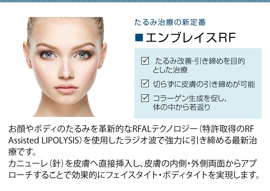 | エンブレイスRF( 顔 4部位(脂肪吸引併用価格)) | 220,000円 |