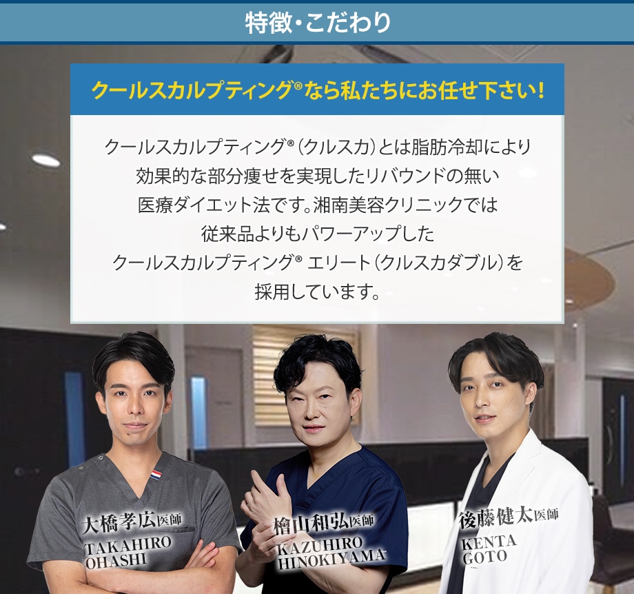クールスカルプティング®エリート(クルスカダブル)は 脂肪減少作用について厚労省が唯一認証した医療機器で、効果面および安全面について科学的根拠のある治療です。