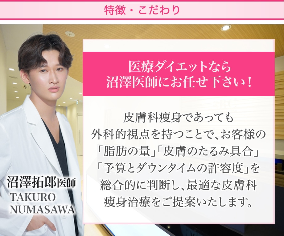 脂肪吸引で大人気の沼澤医師が、あなたに合わせた最善のプランで理想を叶えます。