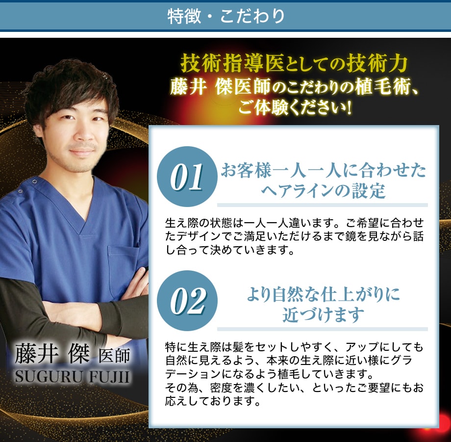 その技術を生かし、移植後の違いがわかる「自然な高密度移植」を信条としております。