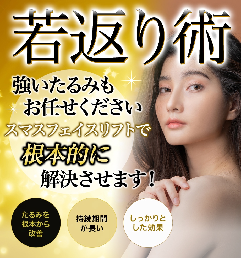 皮膚と皮膚の下にあるSMASを同時に引き上げることでたるみを改善させるリフトアップ治療です。