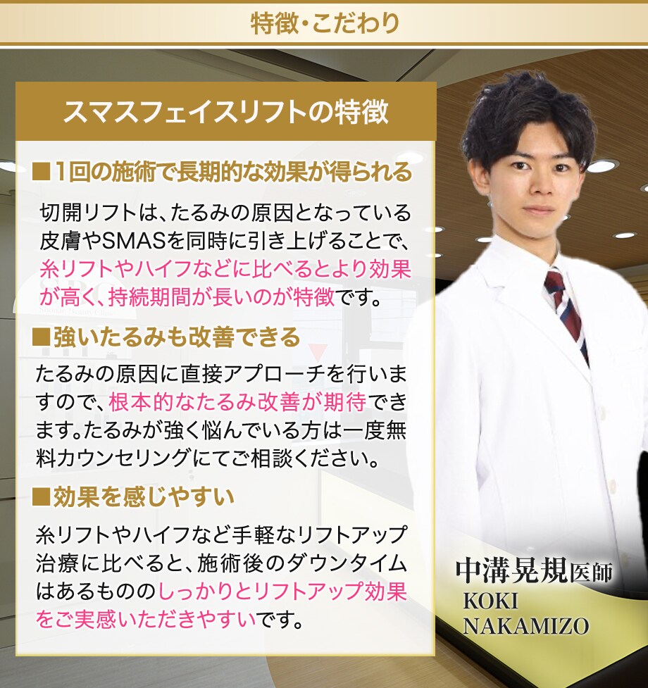 お顔の土台となるSMASからリフトアップするため、たるみを根本的に解決できるだけでなくよりわかりやすくリフトアップ効果が得られます。