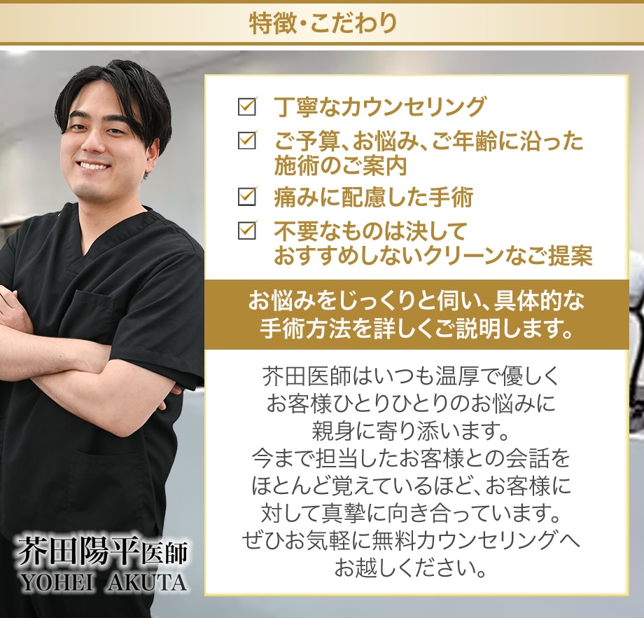 熊本院芥田医師の執刀で、この施術を特別価格で受けていただけるモニター様を募集いたします。