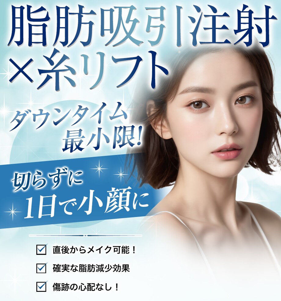 顔が大きく見える原因は、頬や顎下の脂肪とたるんだフェイスラインです。 たるみや顔の大きさがお悩みで、より小顔に近づきたいという方におすすめなのが、糸リフトに脂肪吸引を組み合わせた施術です。