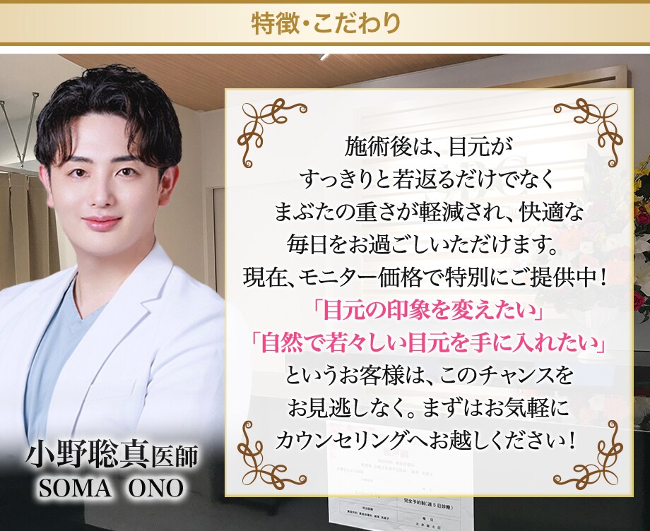 海外の学会で学び、本場韓国で機器を取り揃える美容医療に本気な小野医師の眉下切開モニター募集!