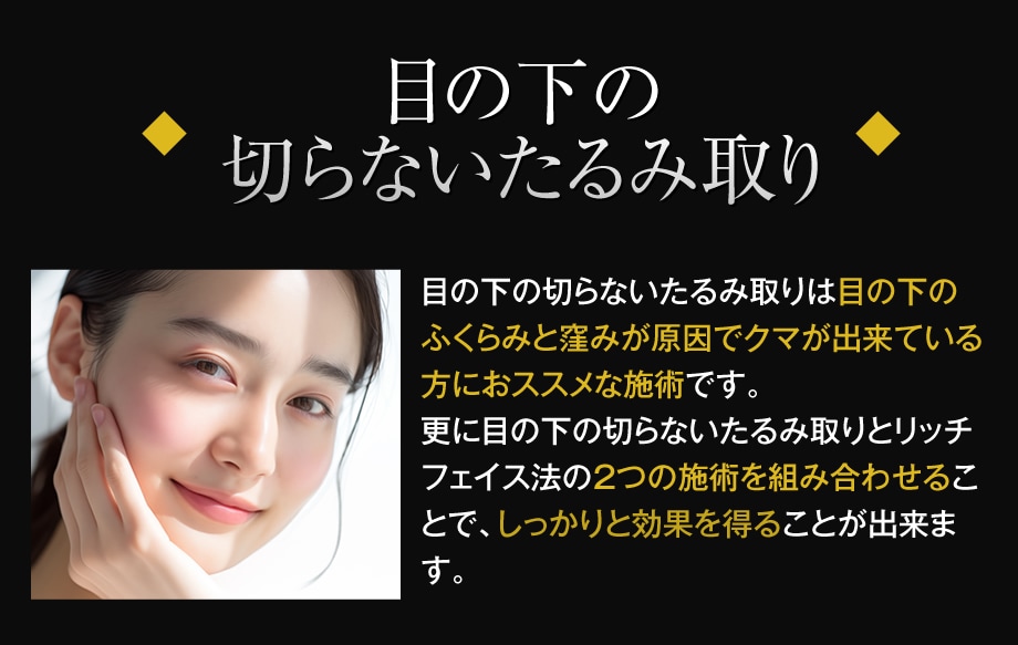 目の下のクマ、たるみは目の下の切らないクマ・たるみ(ふくらみ)取りで解決!