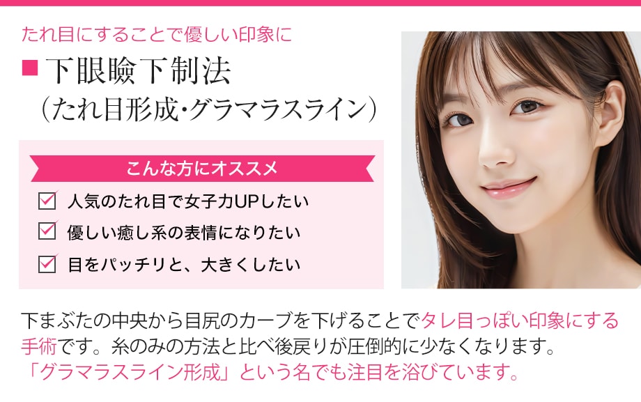 | 下眼瞼下制法(切るたれ目術)(皮膚切開法 両目) | 248,100円 |