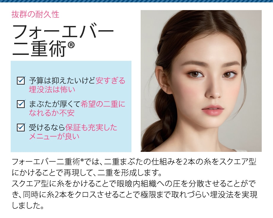 | フォーエバー二重術(R)(両目(笑気麻酔込)) | 98,000円 |