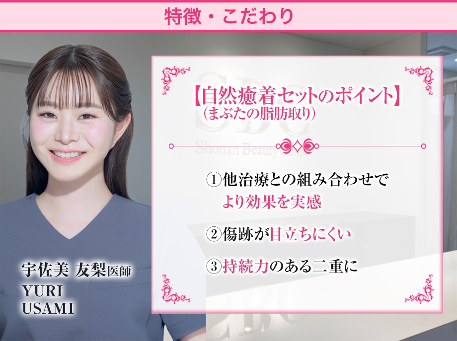 自然癒着セット(まぶたの脂肪取り)は、まぶたをわずか数ミリ切開し、余分な眼窩脂肪を除去することにより、まぶたの分厚さや腫れぼったさを解消することができます。
