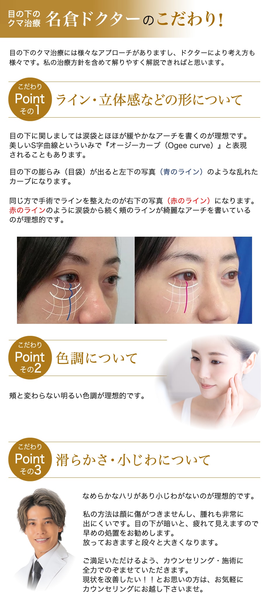 選ばれるには理由がある。確かな技術で最高の美しさを提供、名倉医師だからできるクマ取り治療。