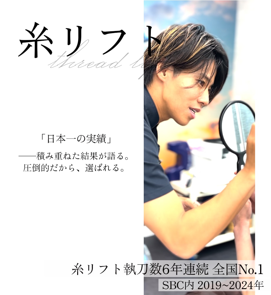 【糸リフト症例数6年連続全国No.1(2019~2024年 SBC内)】