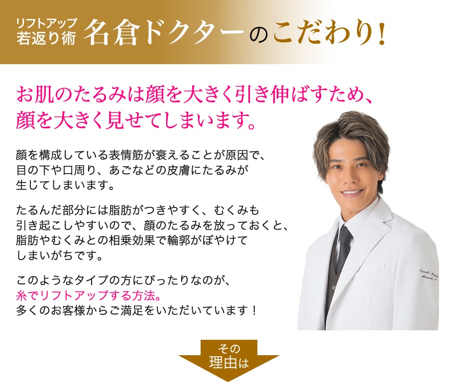 糸でキュッとフェイスラインを引き締め、