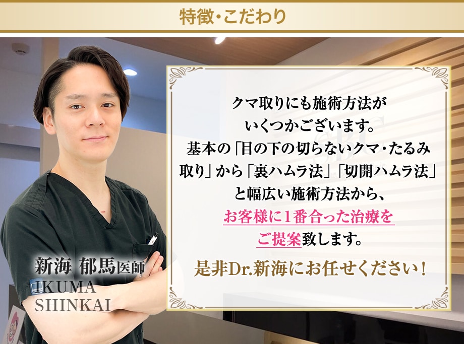 クマは膨らみなので、メイクではなかなか隠すことが難しくお悩みの方がとても多いです。