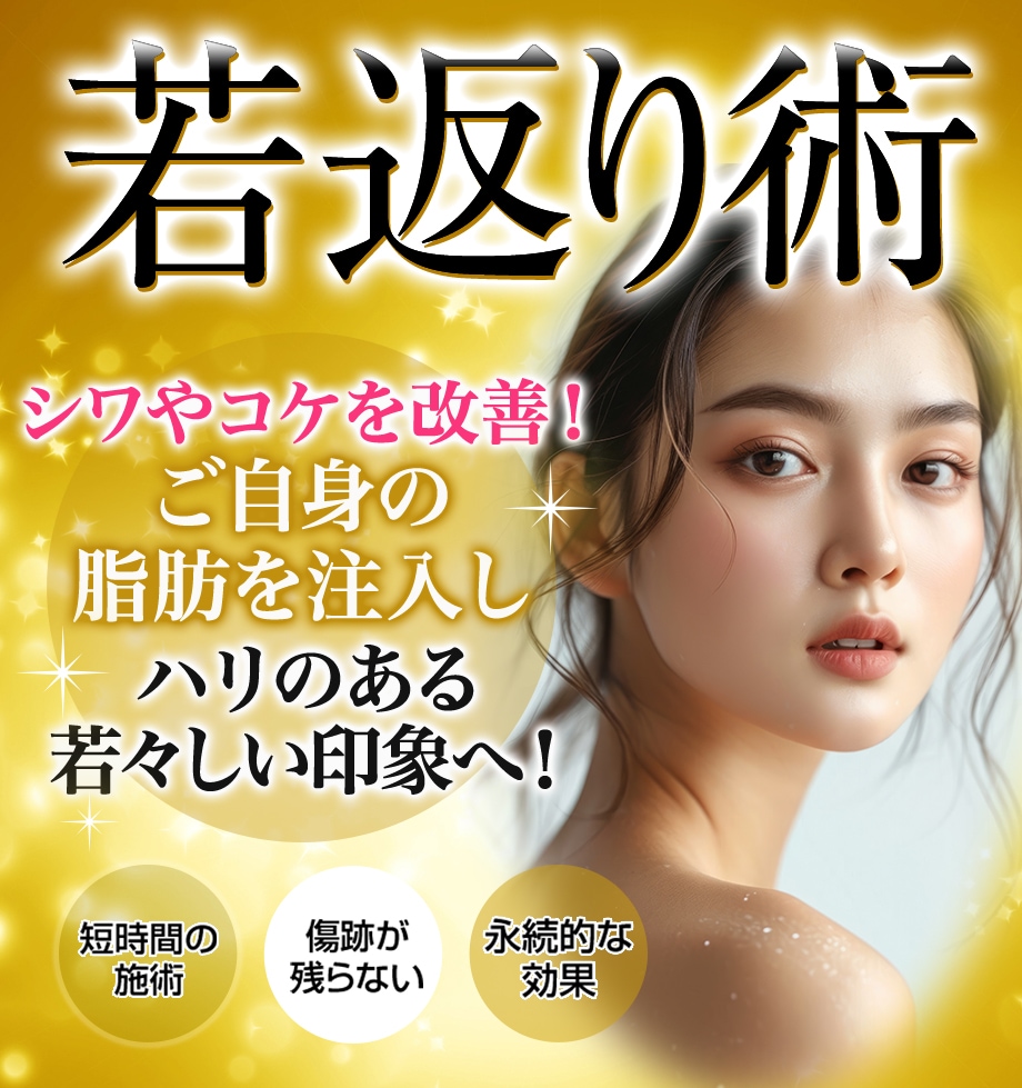 脂肪注入は、ご自身の脂肪を利用して気になる部分に自然なボリュームを取り戻せる施術です。