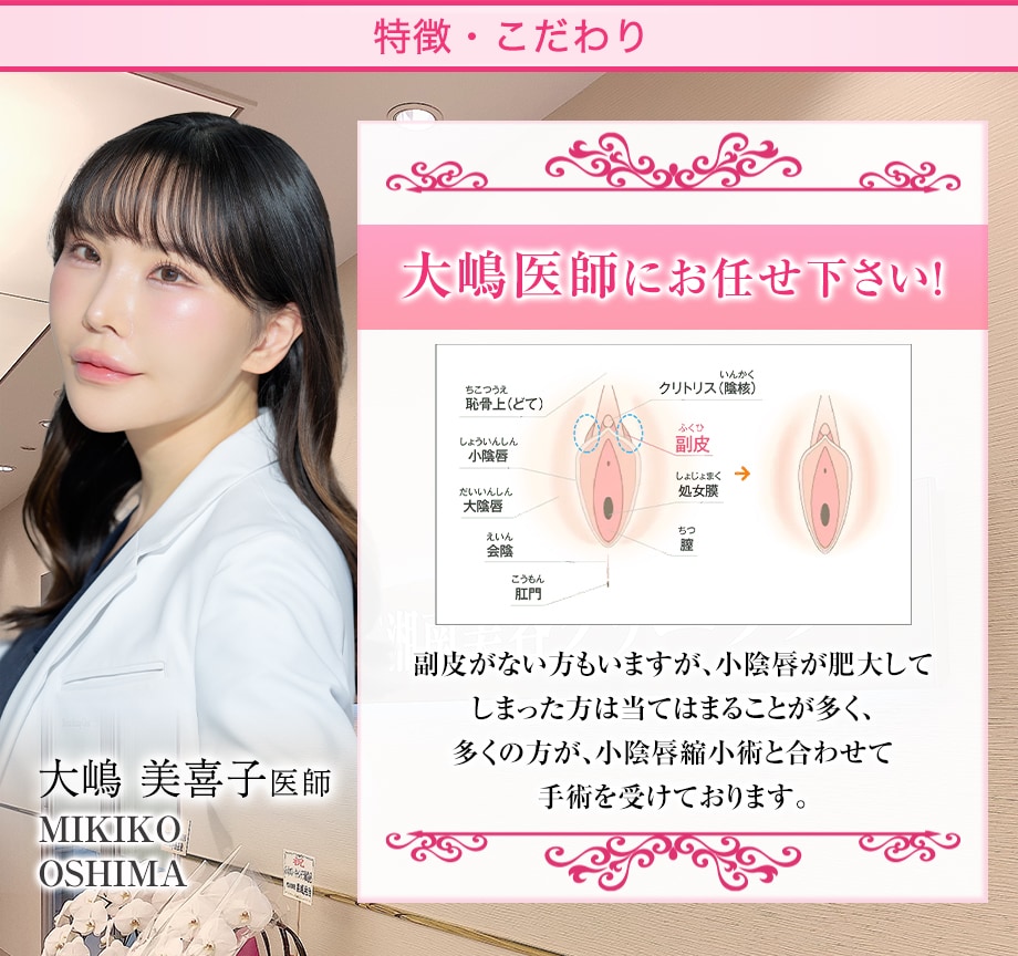 副皮を除去することで、よりすっきりとしたバランスのいい女性器に仕上がります。