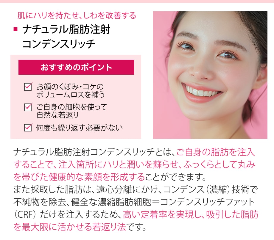 | ナチュラル脂肪注射コンデンスリッチ(コンデンスリッチフェイス作成料) | 57,750円 |