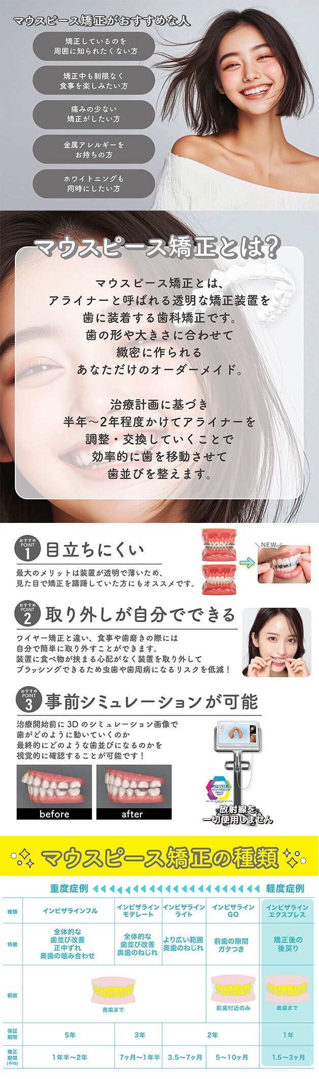 「でも、今さらワイヤー矯正は目立つし、大変そう…」