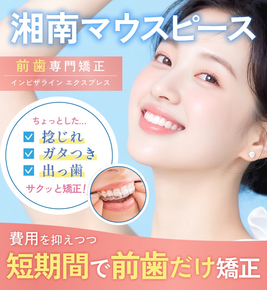 また、簡単に着脱可能なので、食事やデートなど気にすることもなく今と変わらない生活を楽しみながら矯正をすることができます。湘南マウスピースでキレイな前歯を手に入れませんか?