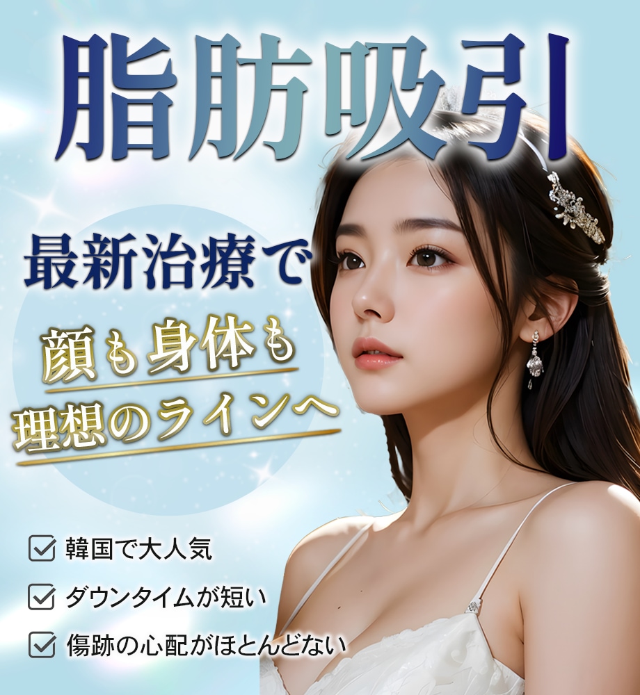 最短ダウンタイムで最高に綺麗な仕上がりへ!韓国式の最新技術の脂肪吸引で理想のフェイス・ボディラインを叶えます。圧倒的にダウンタイムが少ない脂肪吸引のモニター様、募集中です!
